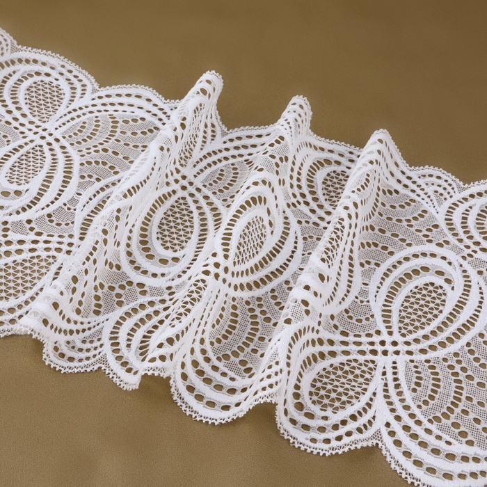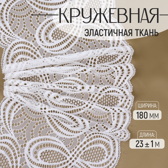 Кружевная эластичная ткань, 180 мм × 23 ± 1 м, цвет белый