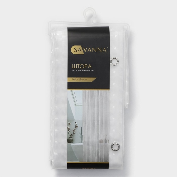 Штора для ванной SAVANNA «Квадраты», 180×180 см, PEVA, цвет белый