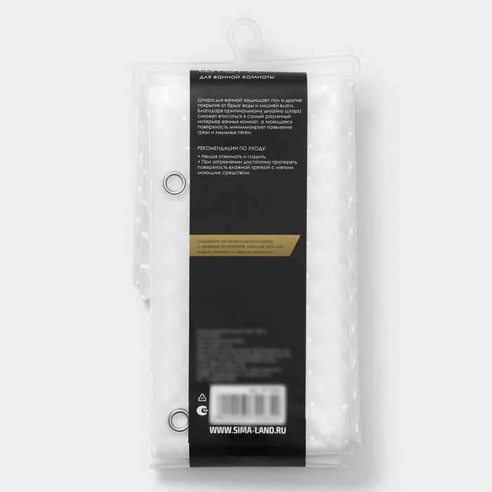 Штора для ванной SL Home, с люверсами, полиэстер, 180×180 см