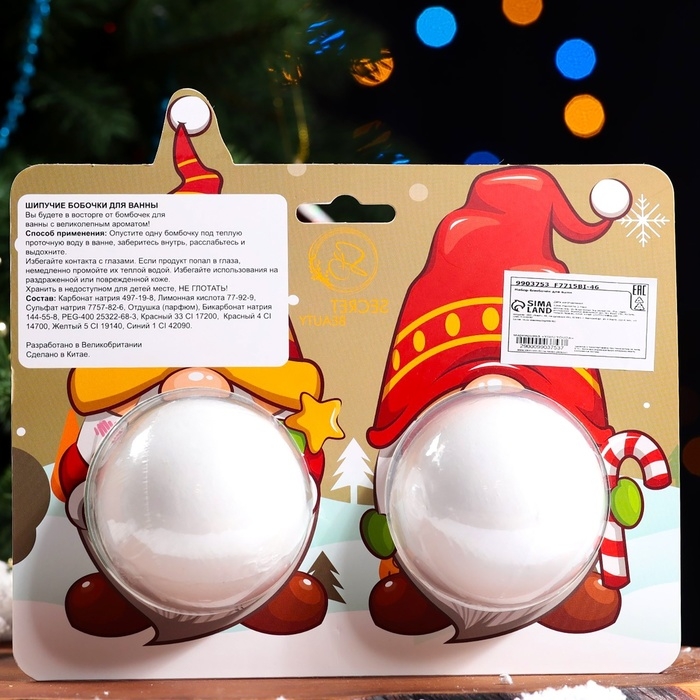 Новогодний набор бомбочек для ванны «Гномы», белый, 2 шт по 180 гр. - это идеальное дополнение для создания волшебной атмосферы во время праздничного сезона.