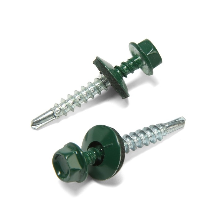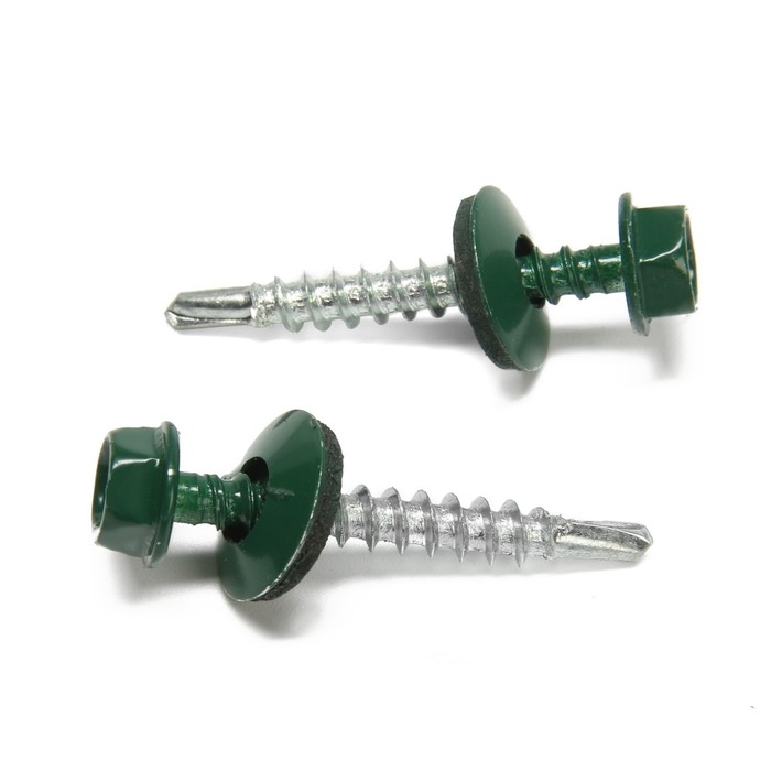 Саморезы кровельные 4,8х35 мм, RAL6005 цвет зеленый, 250 шт.