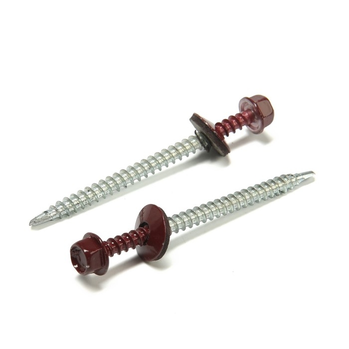 Саморезы кровельные 4,8х70 мм, RAL3005 цвет бордовый, 100 шт
