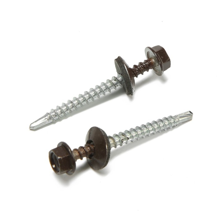 Саморезы кровельные 4,8х50 мм, RAL8017 цвет коричневый, 150 шт.