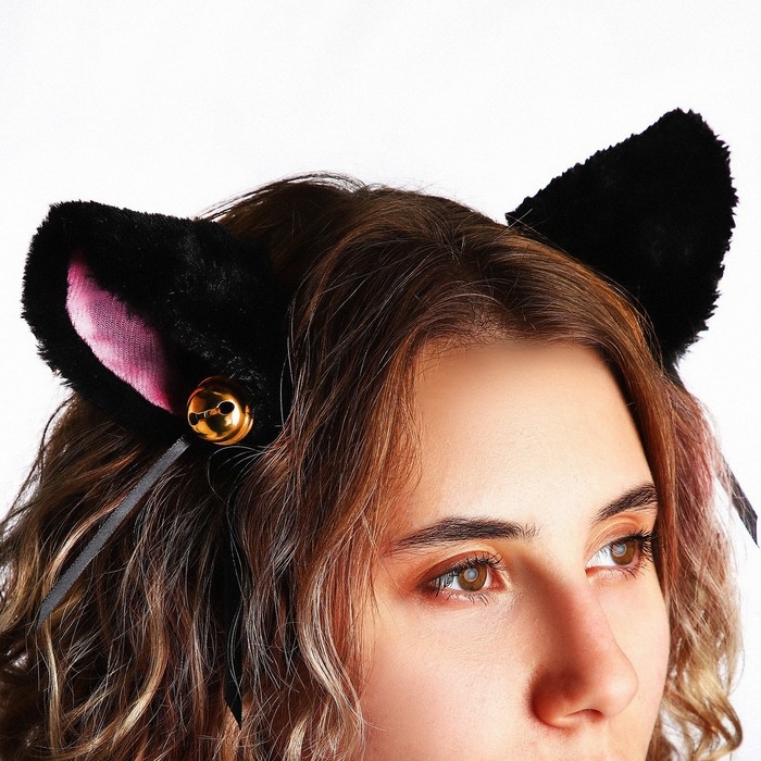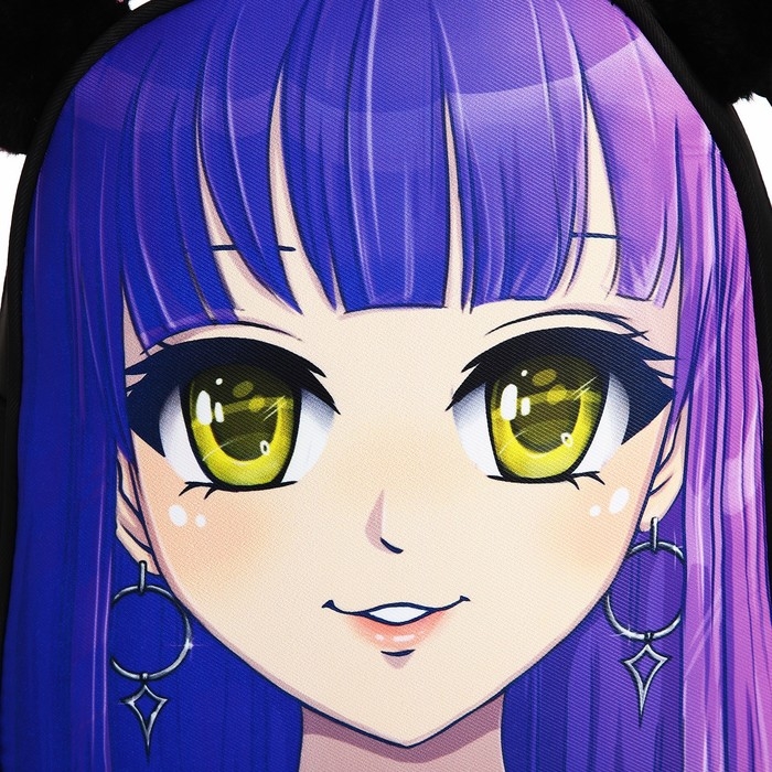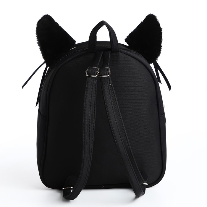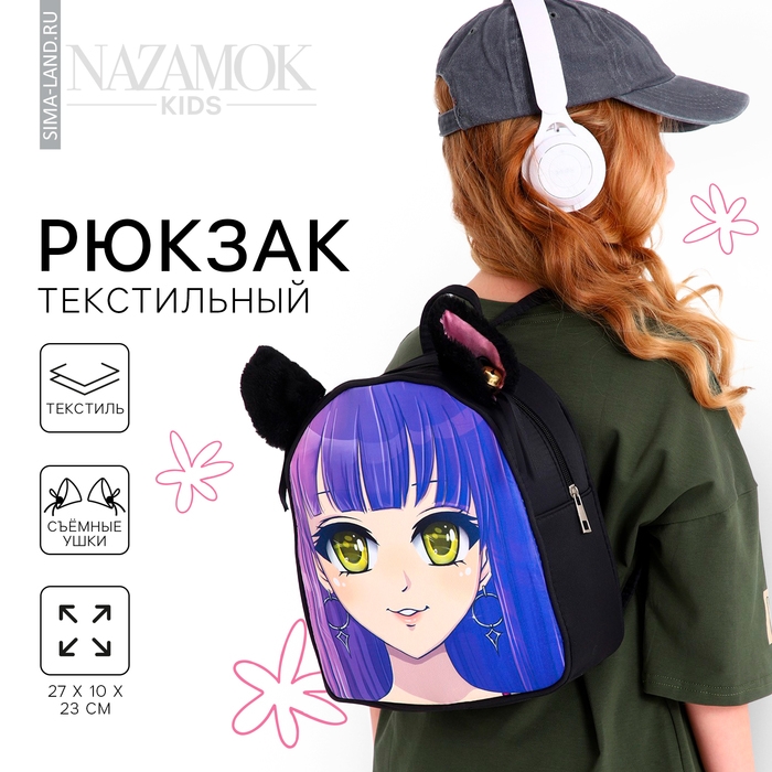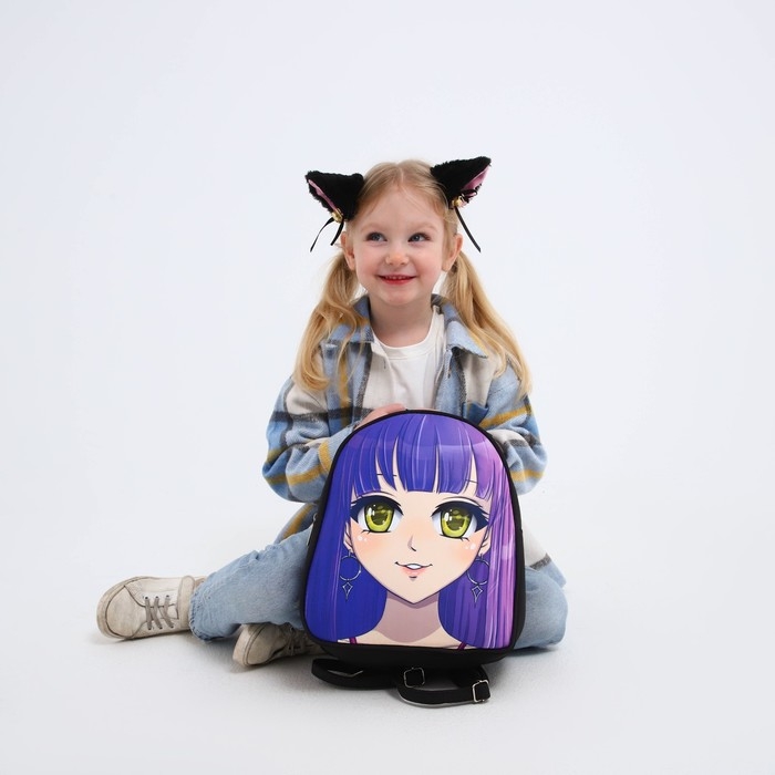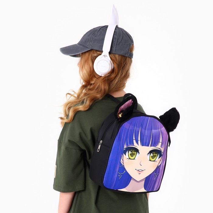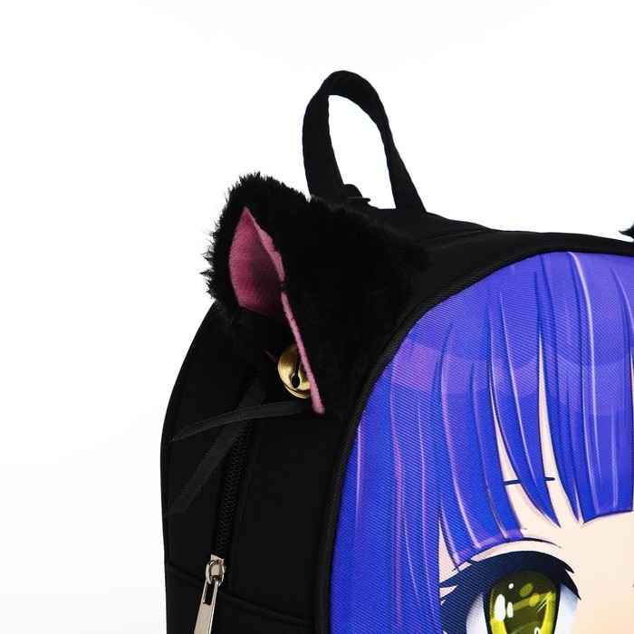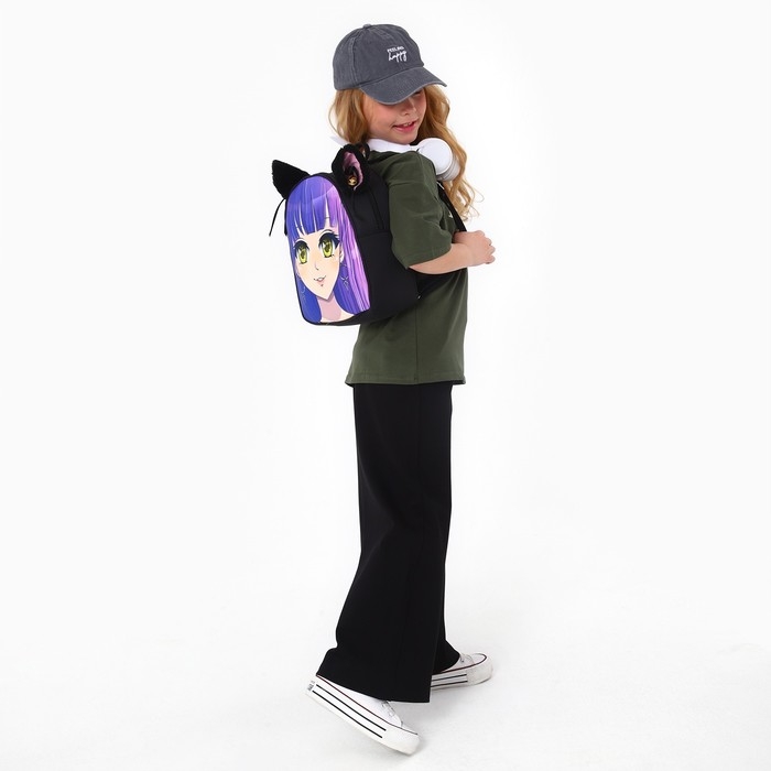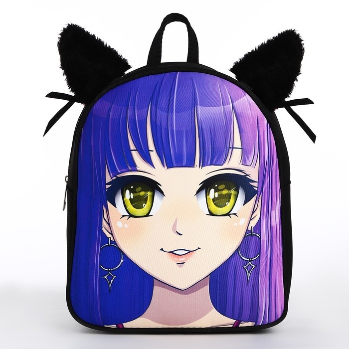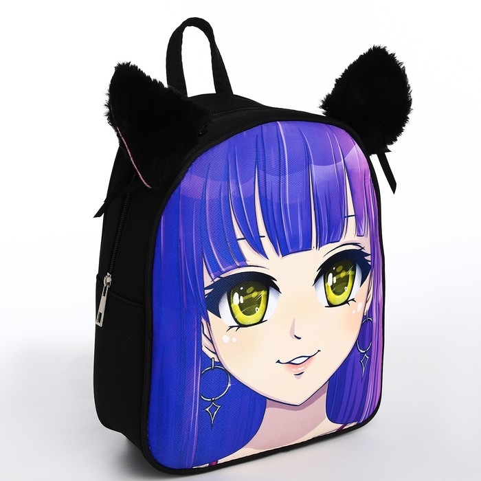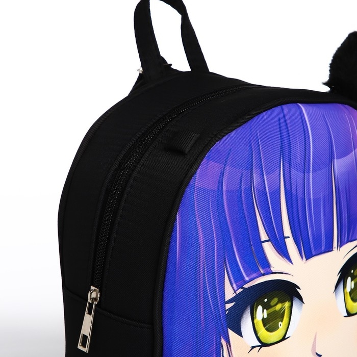 Рюкзак школьный текстильный с ушками на заколках «Аниме», 27х23 см, чёрный/фиолетовый
