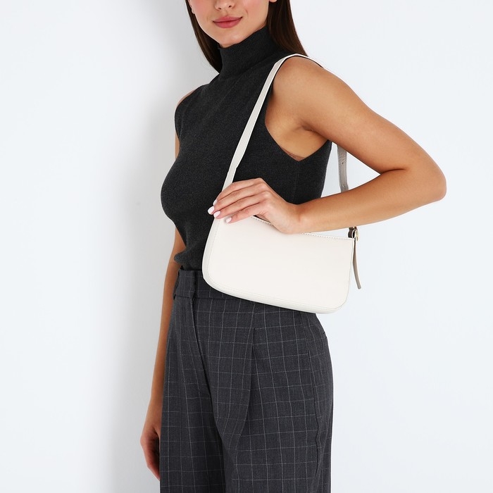 Сумка-багет на молнии, цвет белый