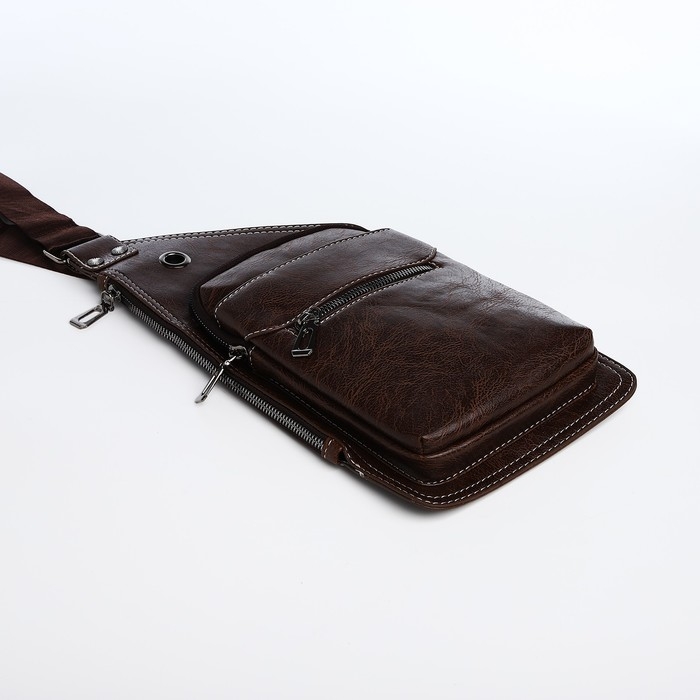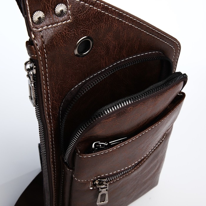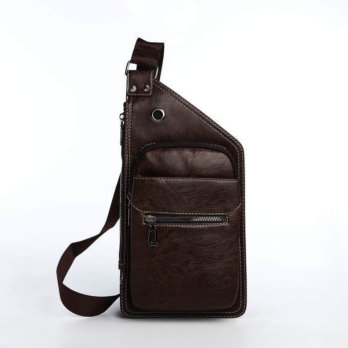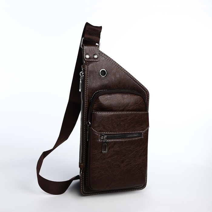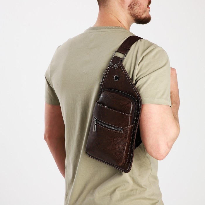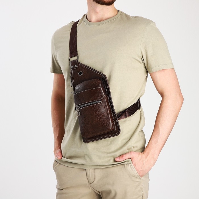 Сумка-слинг мужская из искусственной кожи, цвет коричневый