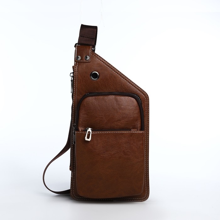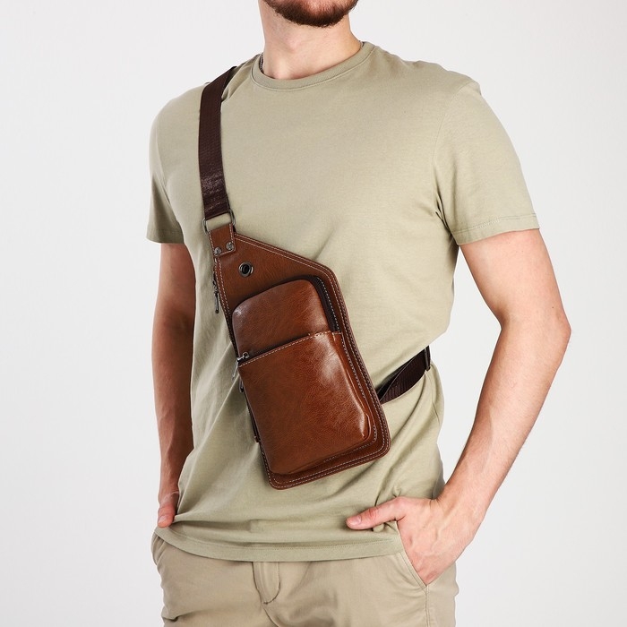 Сумка-слинг мужская из искусственной кожи, цвет коричневый