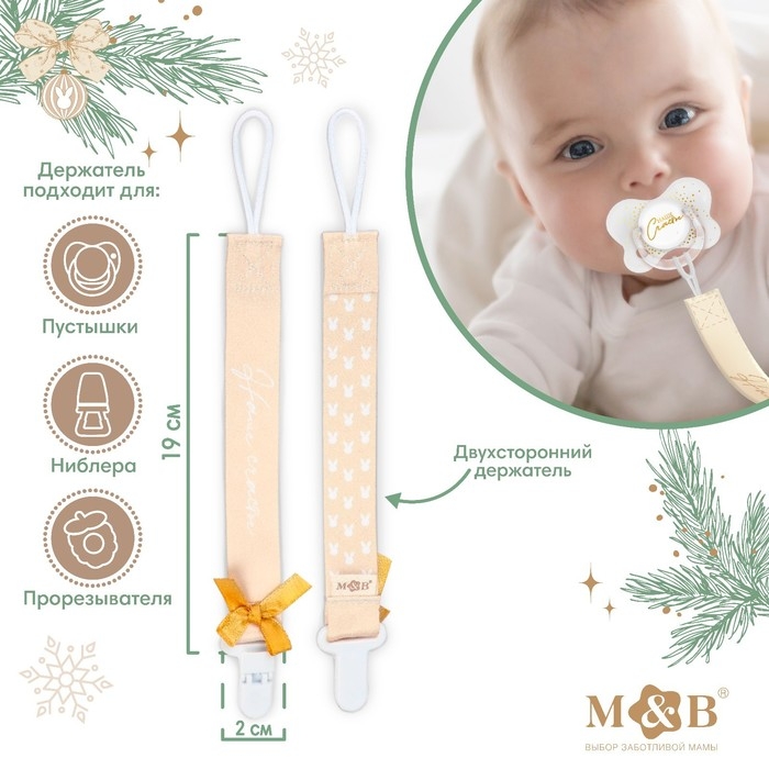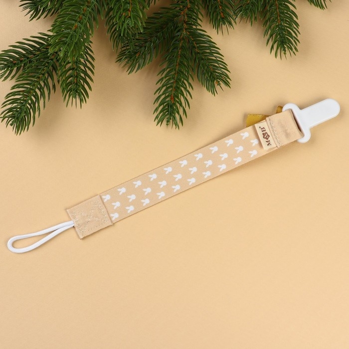 Изделие фиксируется на одежде ребёнка. На конце цепочки есть карабин, который зацепляется за кольцо пустышки. Надёжное крепление убережёт вещь от падения на пол, если малютка случайно выронит её изо рта.