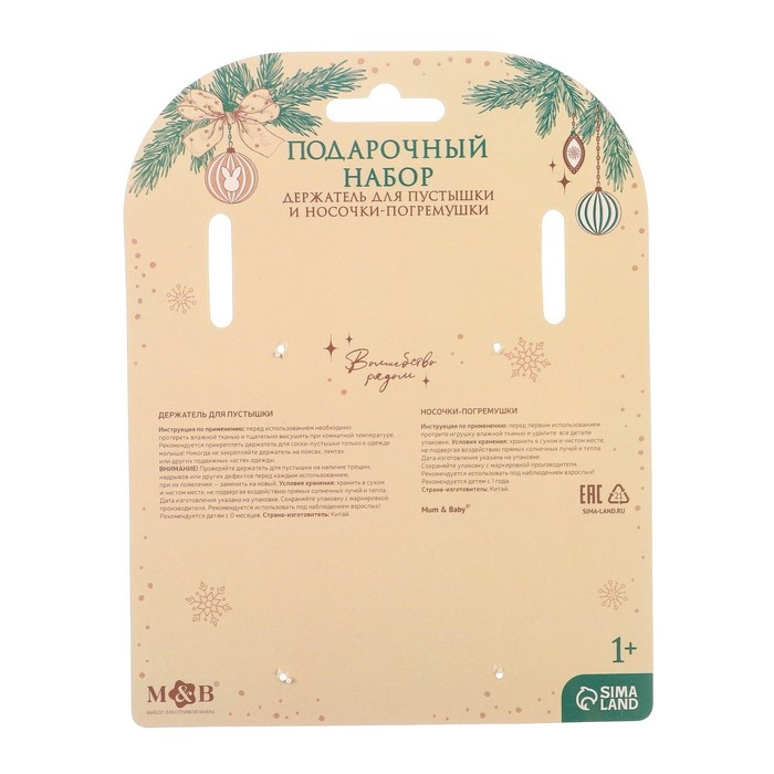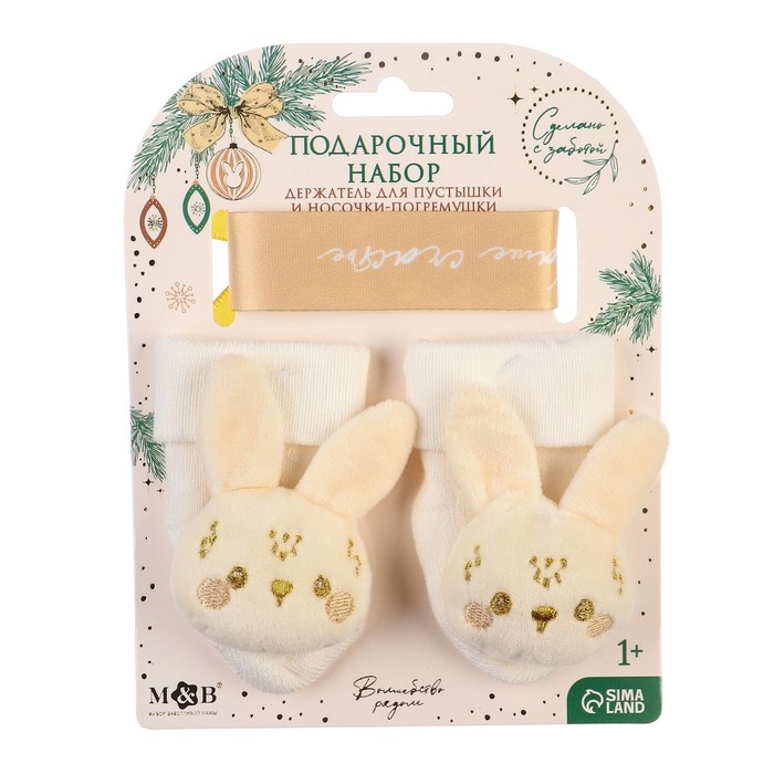Подарочный набор новогодний: держатель для соски-пустышки на ленте и носочки - погремушки на ножки «Наше чудо»