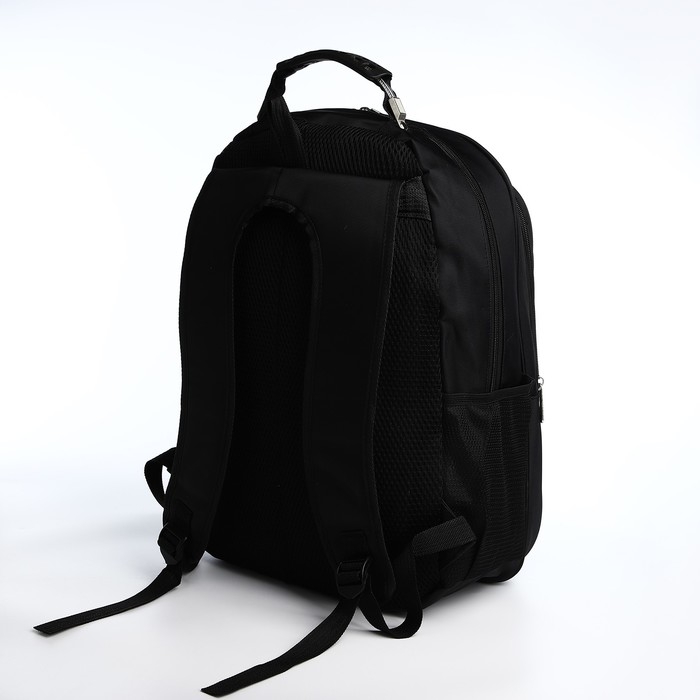 Рюкзак школьный из текстиля, 2 отдела на молнии, 4 кармана, усиленная ручка, цвет чёрный