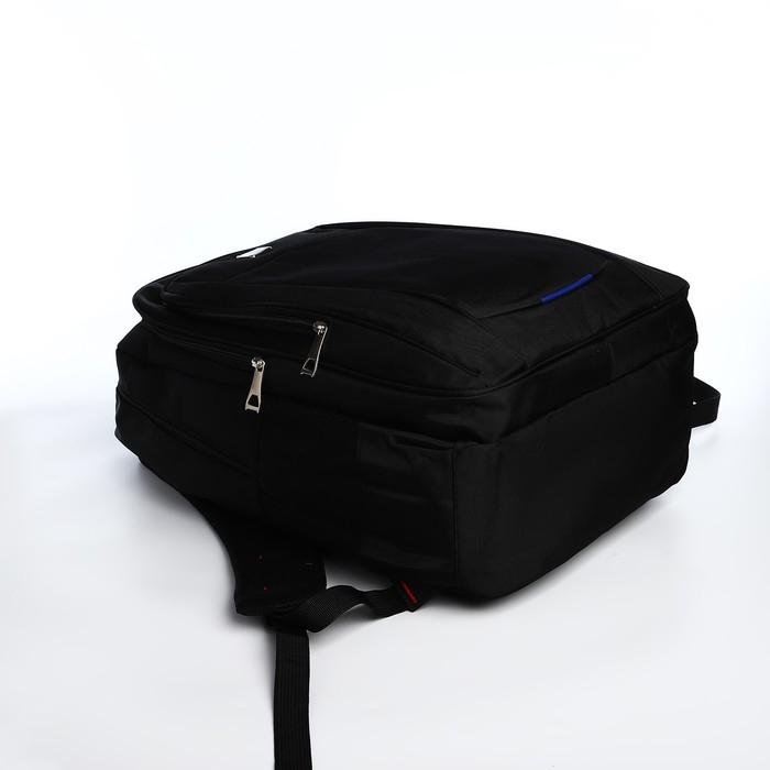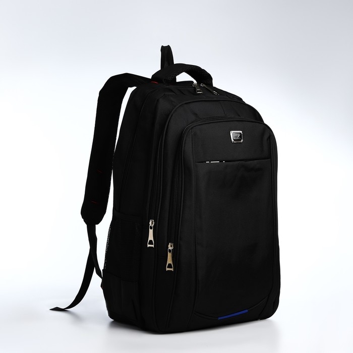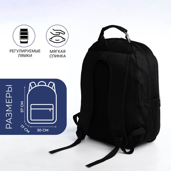 Рюкзак молодёжный на молниях, 4 наружных кармана, цвет чёрный/синий/серый