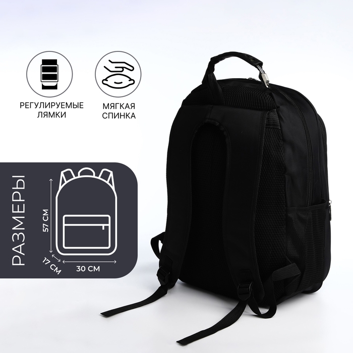 Рюкзак молодёжный на молниях, 4 наружных кармана, цвет чёрный/серый