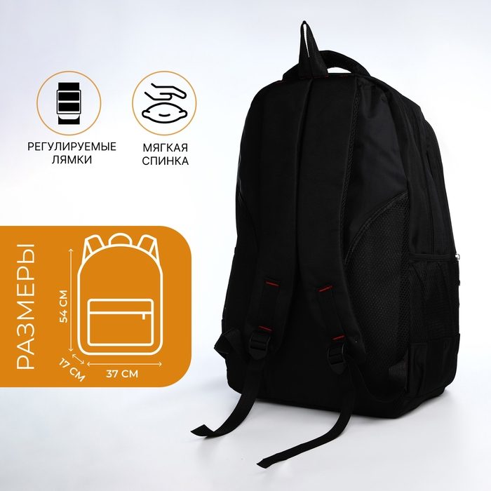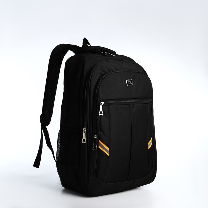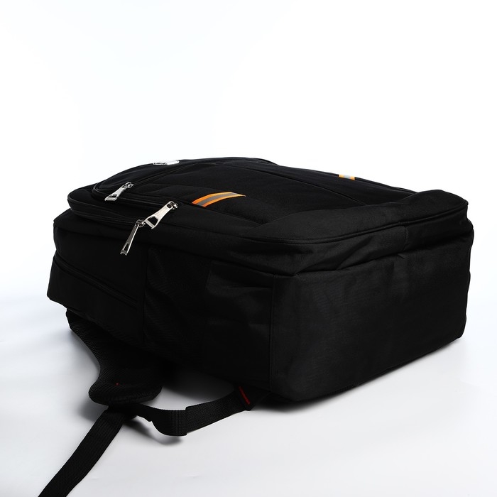 Рюкзак молодёжный из текстиля, 2 отдела на молнии, 4 кармана, цвет чёрный/оранжевый
