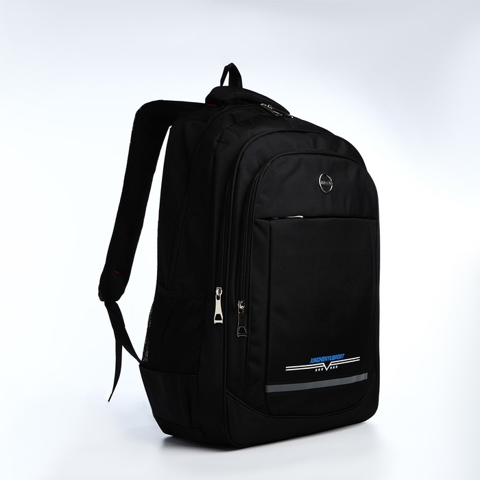 Рюкзак молодёжный из текстиля, 2 отдела на молнии, 4 кармана, цвет чёрный/синий