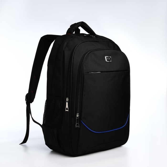 Рюкзак молодёжный из текстиля, 2 отдела на молнии, 4 кармана, цвет чёрный/синий