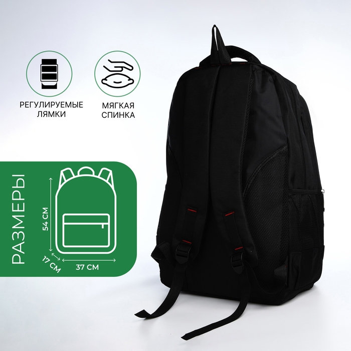 Рюкзак молодёжный из текстиля, 2 отдела на молнии, 4 кармана, цвет чёрный/зелёный