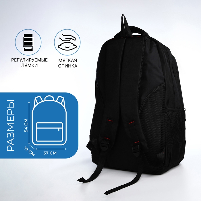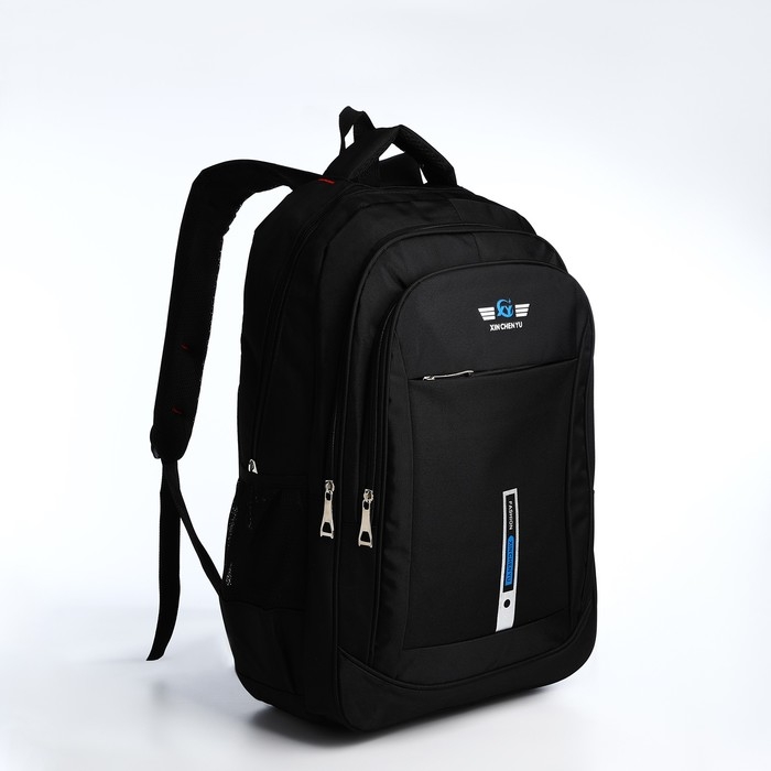 Рюкзак молодёжный из текстиля, 2 отдела на молнии, 4 кармана, цвет чёрный/синий