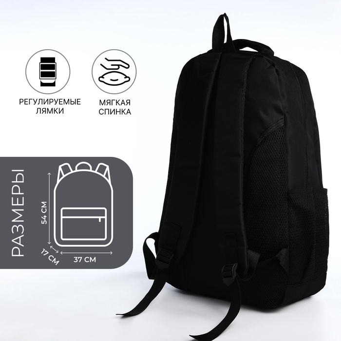 Рюкзак молодёжный из текстиля, 2 отдела на молнии, 4 кармана, цвет чёрный