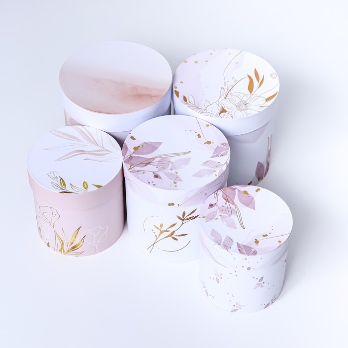 Набор шляпных коробок 5 в 1" Нежность" , 23 х23 - 15 х 15 см