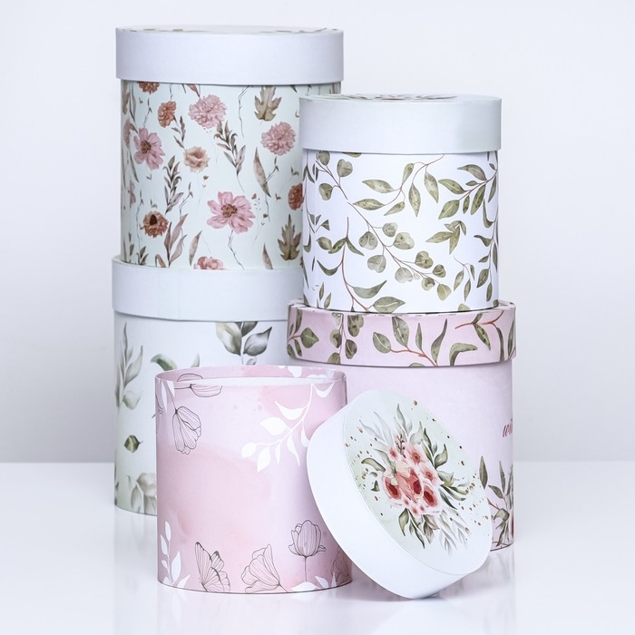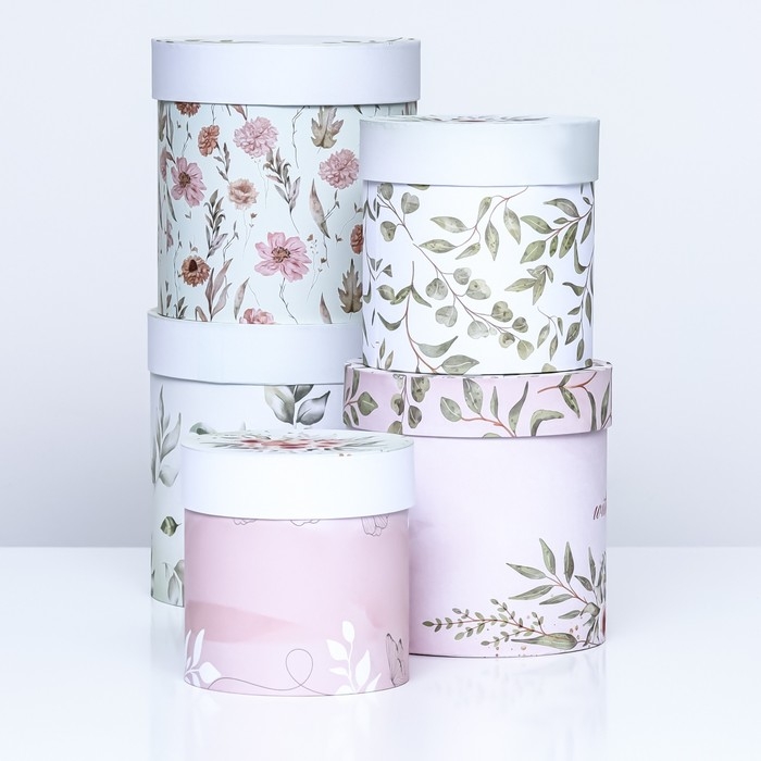 Набор шляпных коробок 5в1 "Цветочный", 20 × 20 × 20‒14 × 14 х 14 см