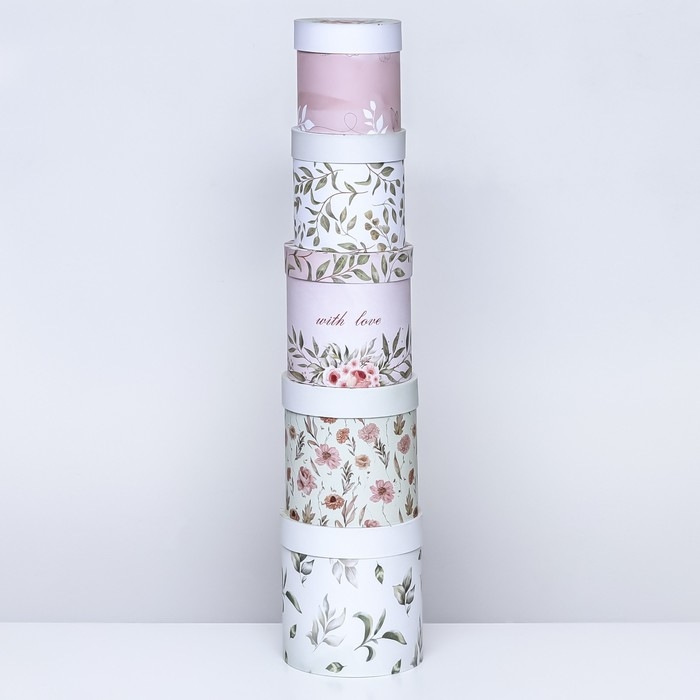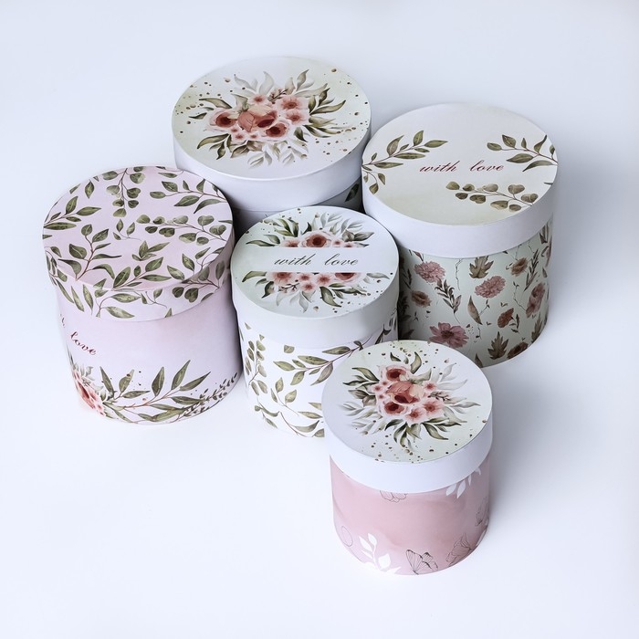 Набор шляпных коробок 5 в 1" Нежность" , 23 х23 - 15 х 15 см