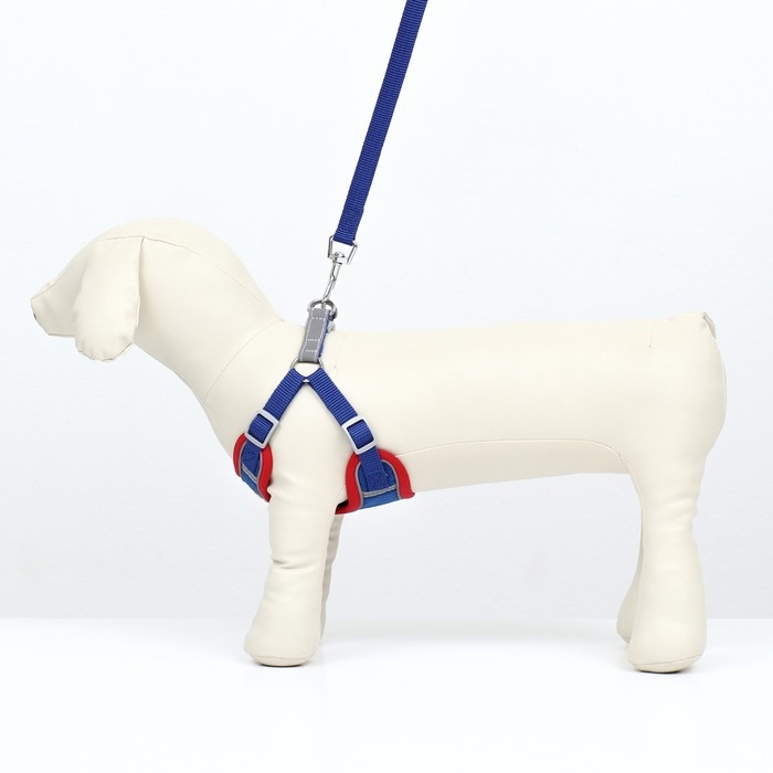 Комплект с мягкой шлейкой "Якорь", размер M, поводок, 120 х 1,5 см, ОГ 34-66 см, синий
