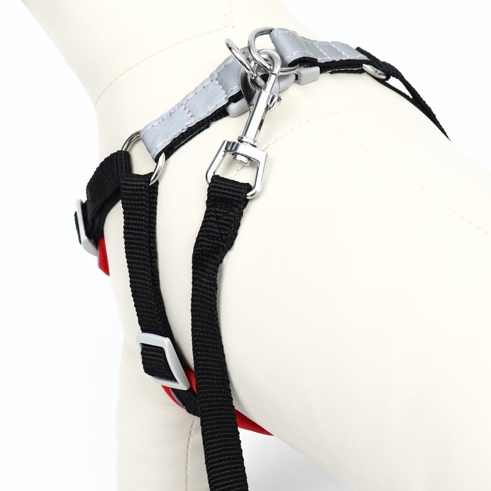Идеальный комплект для прогулок с вашим верным другом, который доставит истинное удовольствие вам и вашему питомцу. В комплект входит шлейка и поводок.Такой комплект подойдет для собак мелких пород.Шлейка для собак имеет эргономичную форму, благодаря чему смягчается любое натяжение и рывки питомца, ведь нагрузка распределяется равномерно. Амуниция изготовлена из качественной и дышащей ткани – полиэстер. Такая шлейка подойдет для носки на ежедневной основе: на прогулках или дрессировках. Анатомическая посадка шлейки обеспечивает комфортное ношение, а нагрудная лямка расположена ниже шеи и не сдавливает ее.Комплект оснащен светоотражающими вставками, теперь вы и ваш питомец сможете наслаждаться прогулками в темное время суток. Вы больше можете не переживать за безопасность своего любимца, ведь теперь даже в ночное время суток вы всегда сможете видеть своего любимца и держать ситуацию под контролем.Шлейка имеет два кольца для крепления поводка или рулетки: основное кольцо расположено на спинке, а второе на груди, оно может использоваться для коррекции поведения вашего питомца или для обычного адресника.Черный цвет подчеркнет индивидуальность вашего питомца и подойдёт под любой окрас шерсти, тем самым выделив вашего питомца.Позаботьтесь о безопасности и комфорте вашего любимца с нашим замечательным комплектом. Такой подарок будет точно оценен вашим любимцем.