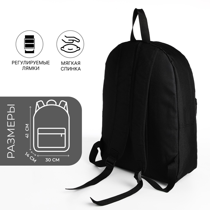 Рюкзак школьный из текстиля на молнии, наружный карман, цвет чёрный