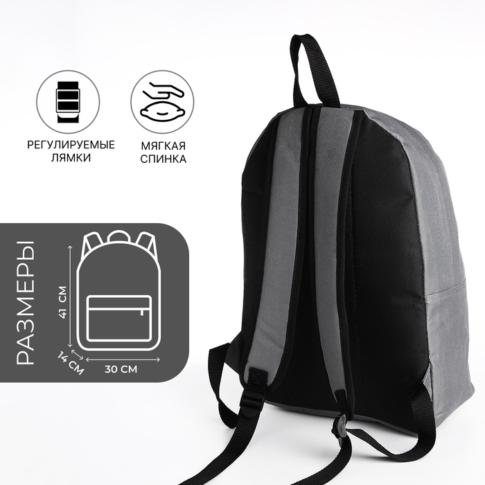 Рюкзак школьный из текстиля на молнии, наружный карман, цвет серый