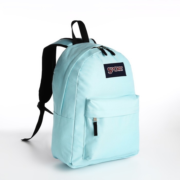 Рюкзак школьный из текстиля на молнии, наружный карман, цвет голубой