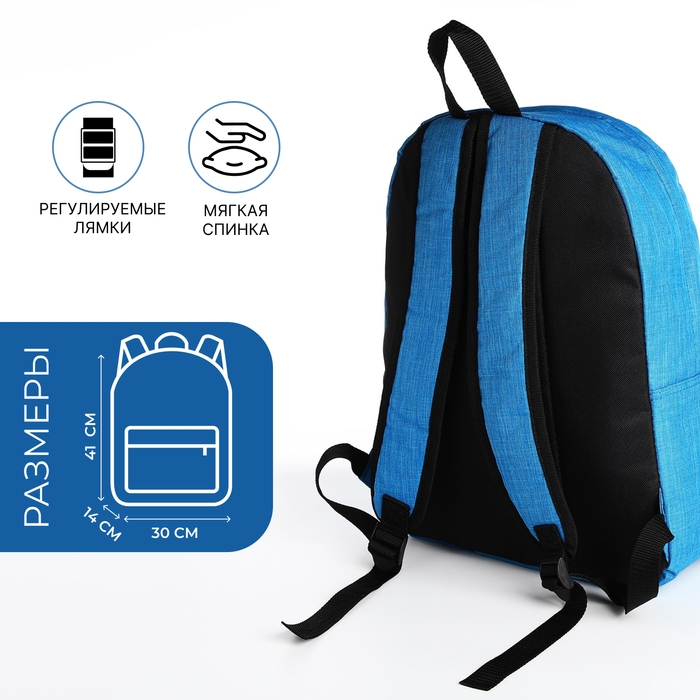 Рюкзак школьный из текстиля на молнии, наружный карман, цвет голубой