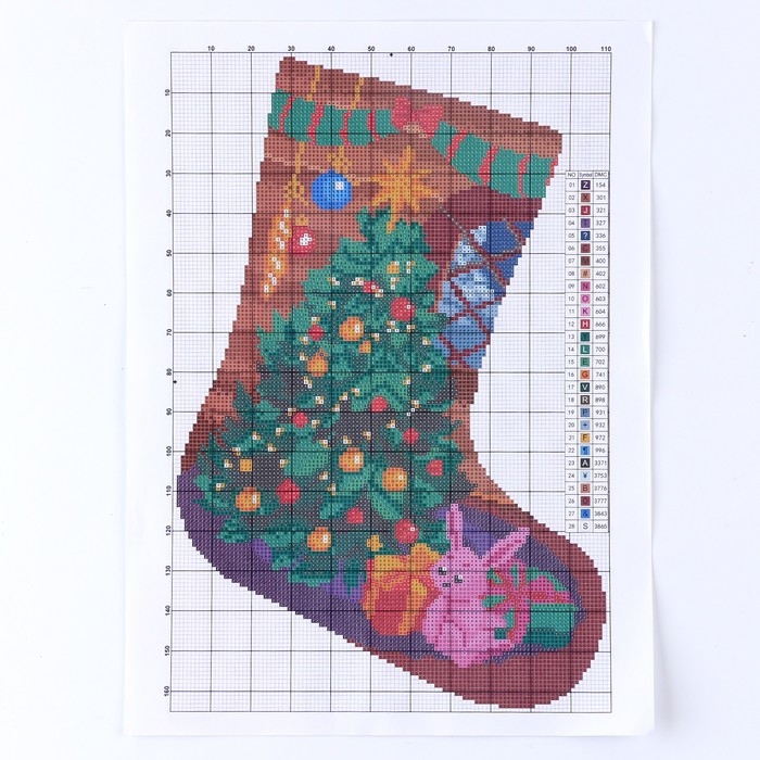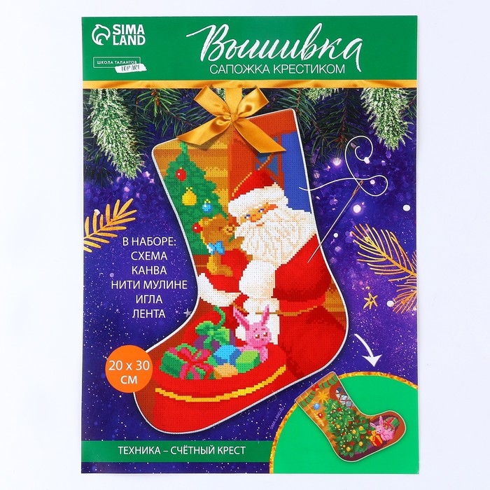Вышивка крестиком на Новый год. Набор для вышивания носка «Дед Мороз с игрушками»