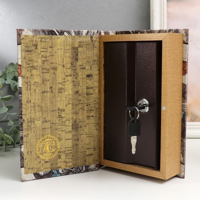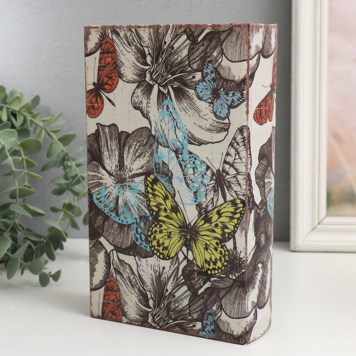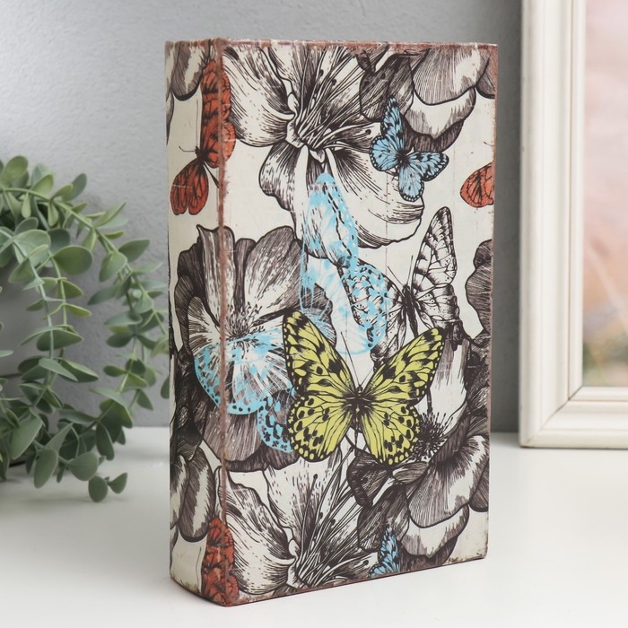 Сейф-книга дерево кожзам "Цветы и бабочки" 21х13х5 см