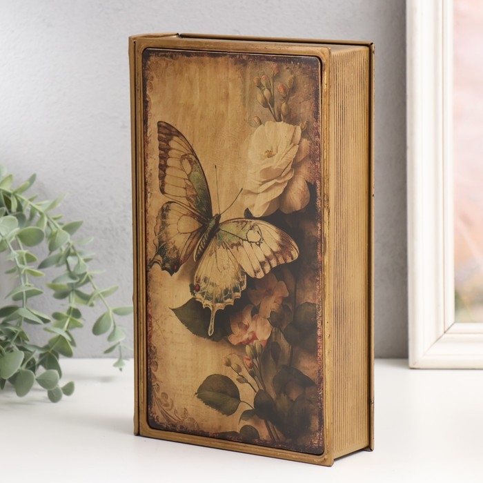 Шкатулка-книга металл, кожзам "Бабочка на букете" 26х16х5 см