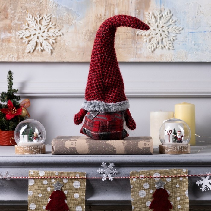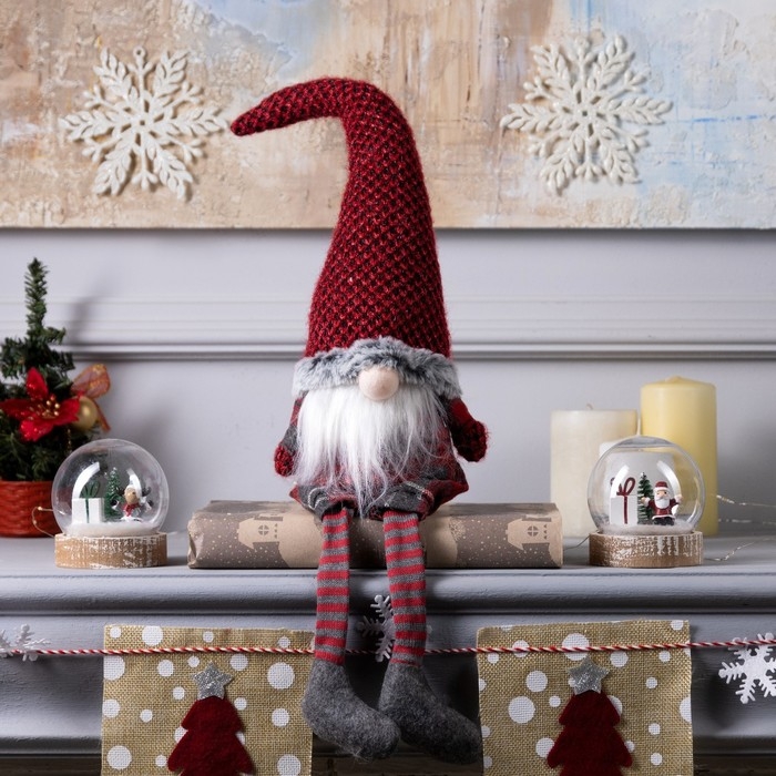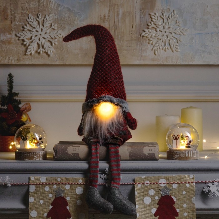 Светодиодная фигура «Гном в красном колпаке» 13 × 58 × 8 см, текстиль, батарейки AG10х3 (в комплекте), свечение тёплое белое