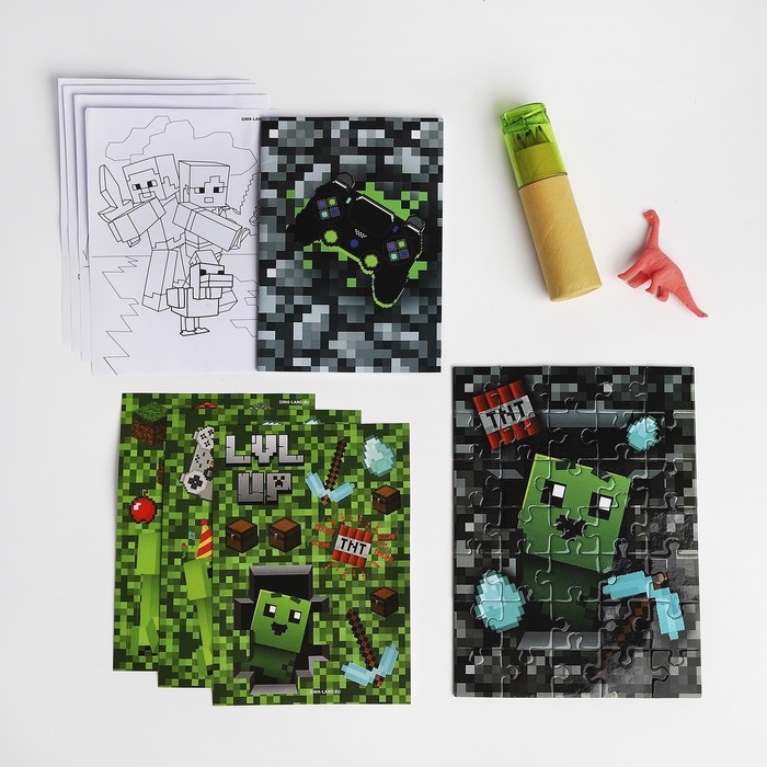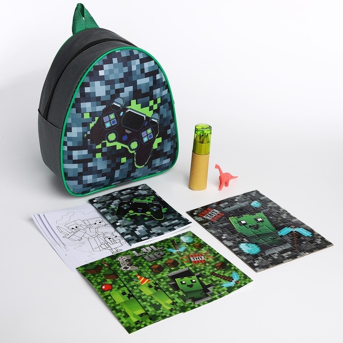 Детский рюкзак с блокнотом,раскраской,карандашами,пазлами и наклейками «Пиксельный мир»