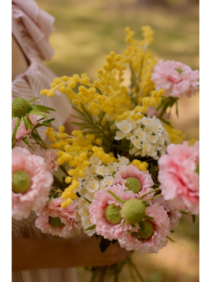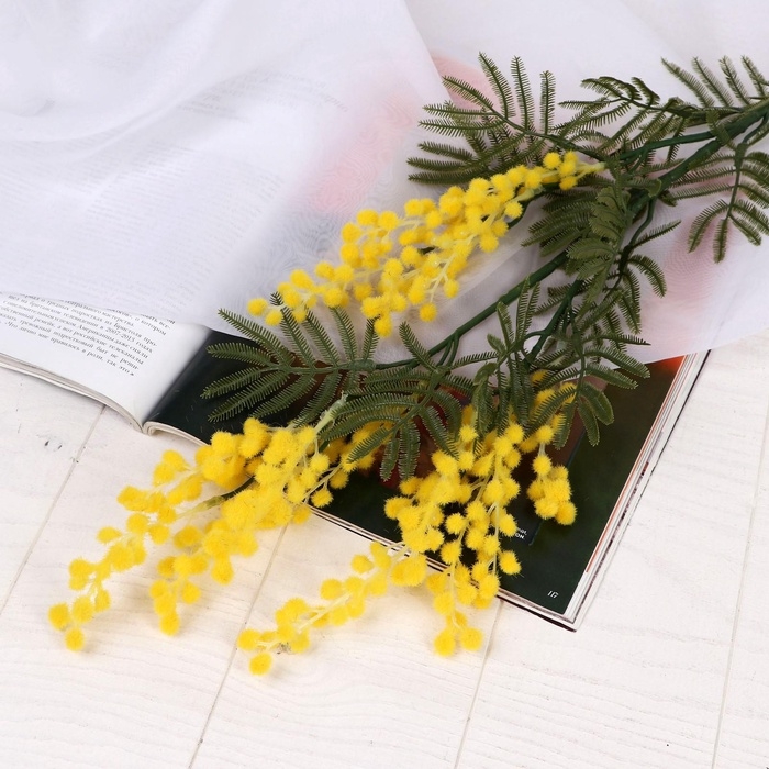 Эти искусственные мимозы помогают создать уютную атмосферу в доме или офисе без хлопот, связанных с живыми растениями. Они отлично подходят для тех, кто ценит эстетику и комфорт, а также ищет долговечное украшение. Такой букет станет стильным дополнением интерьера или приятным подарком для близких и коллег.