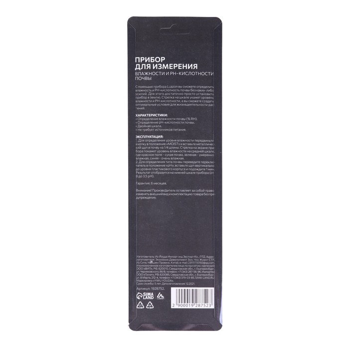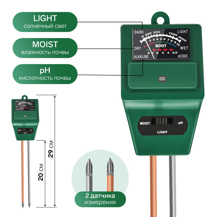 Прибор для измерения Luazon, влажность/pH/кислотность почвы, зеленый