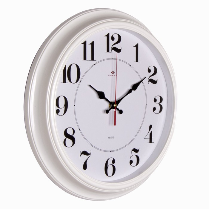 Часы настенные, интерьерные "Рубин", бесшумные, d-35 см, корпус белый