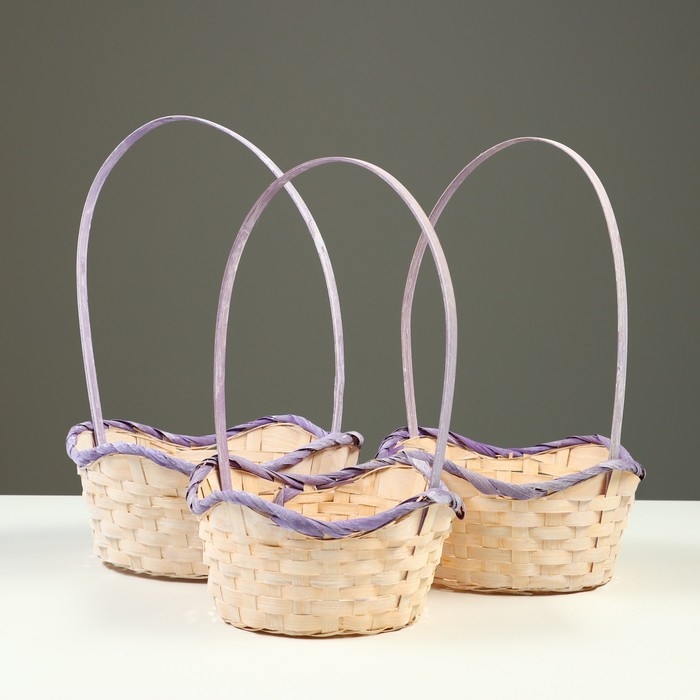 Набор корзин плетеных (бамбук),19xH7,5X9,5x31см,22x9x11x34,24x9x11см,5x35см, 3 шт, сиреневая 1008804