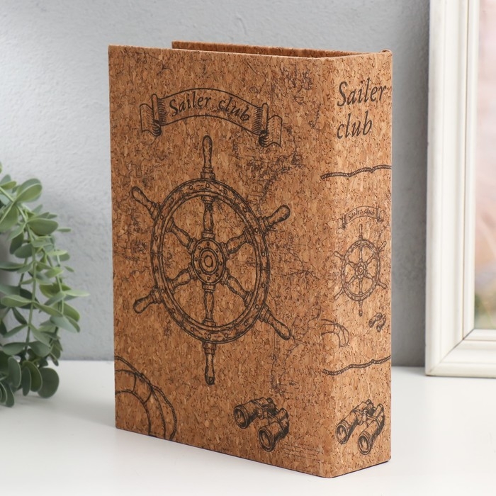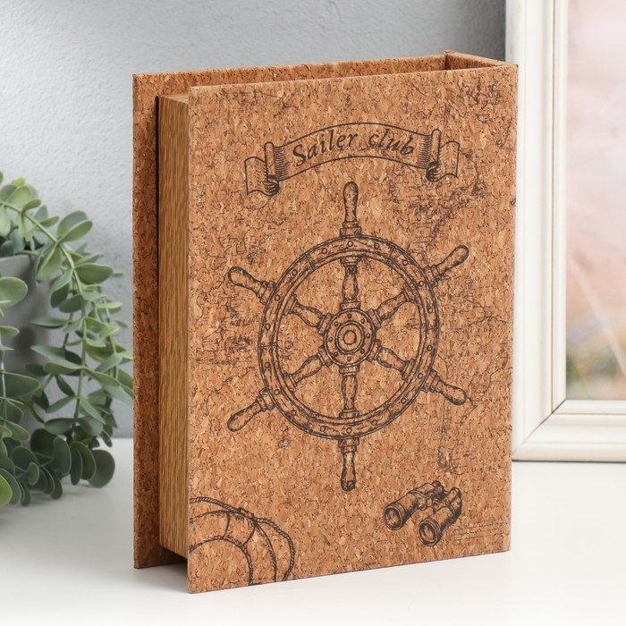 Шкатулка-книга дерево кожзам под пробку "Штурвал" 6х18х24 см