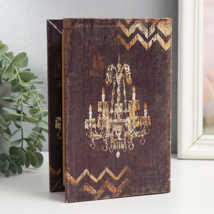 Шкатулка-книга дерево кожзам, стекло "Хрустальная люстра" 4,3х12х18 см