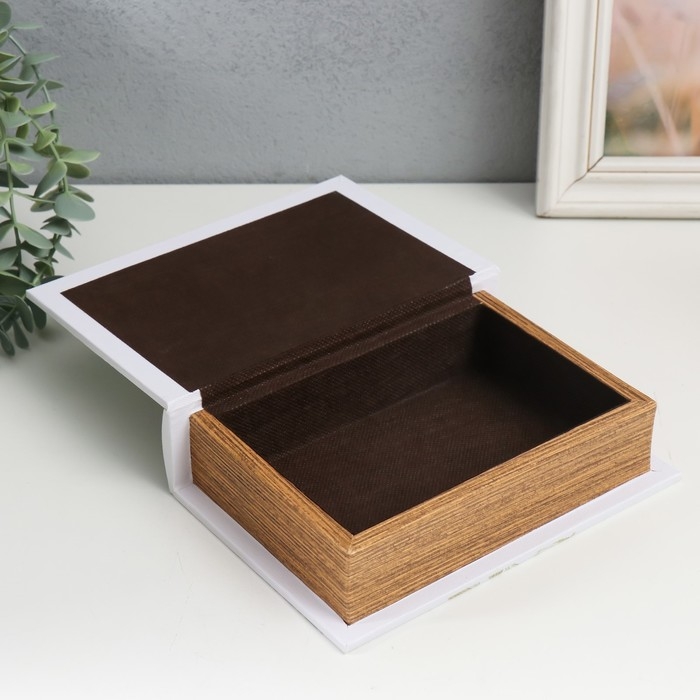 Шкатулка-книга дерево, кожзам "Яркие бабочки и листья папоротника" 4,5х13х18 см
