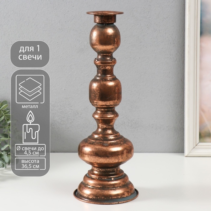 Подсвечник металл на 1 свечу "Эрмете" состаренная бронза 13,5х13,5х36,5 см