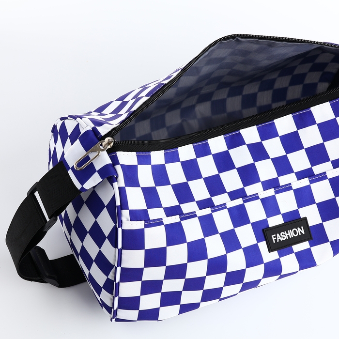 Сумка спортивная на молнии, регулируемый ремень, маленький размер, цвет белый/синий