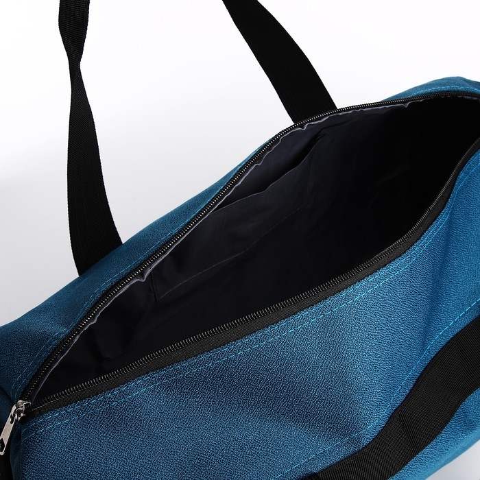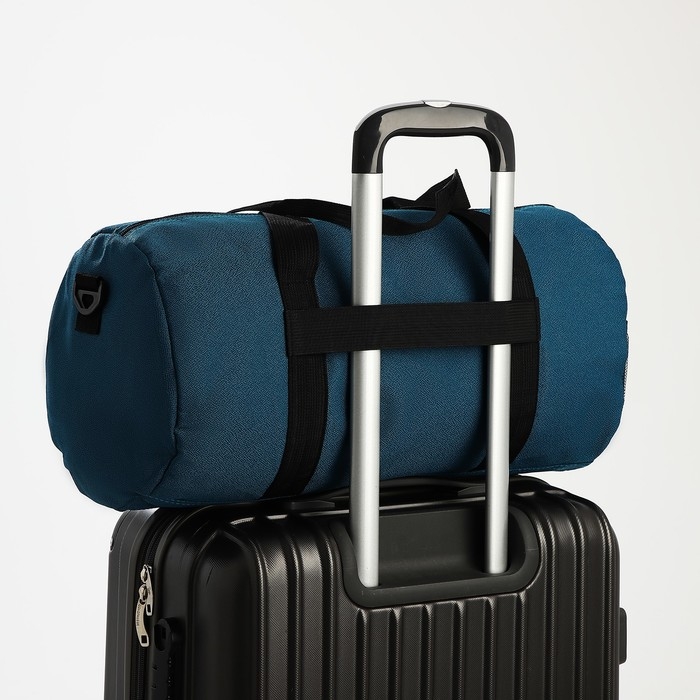 Сумка дорожная на молнии, наружный карман, держатель для чемодана, длинный ремень, цвет морской волны