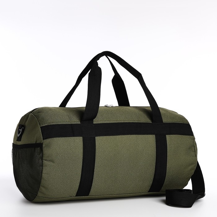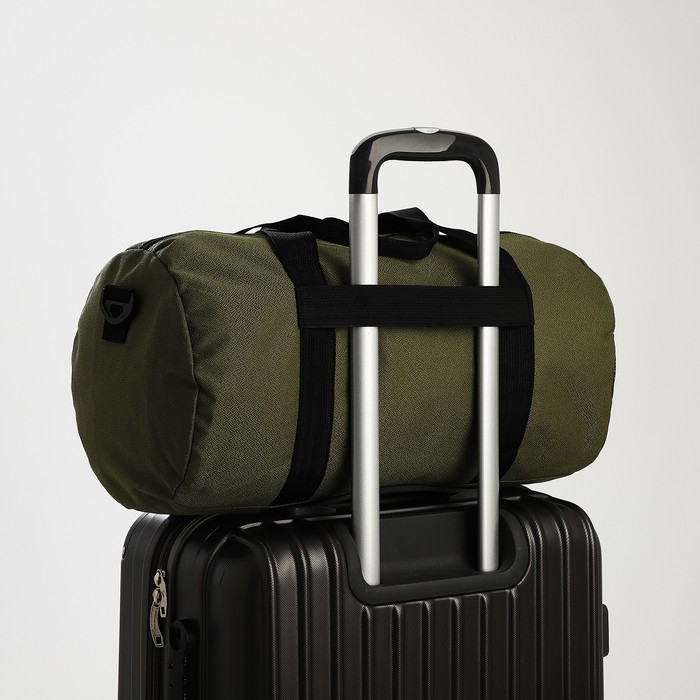 Сумка дорожная на молнии, наружный карман, держатель для чемодана, длинный ремень, цвет хаки