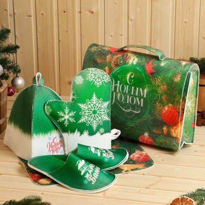 Банный набор в портфеле "С новым годом", зеленый