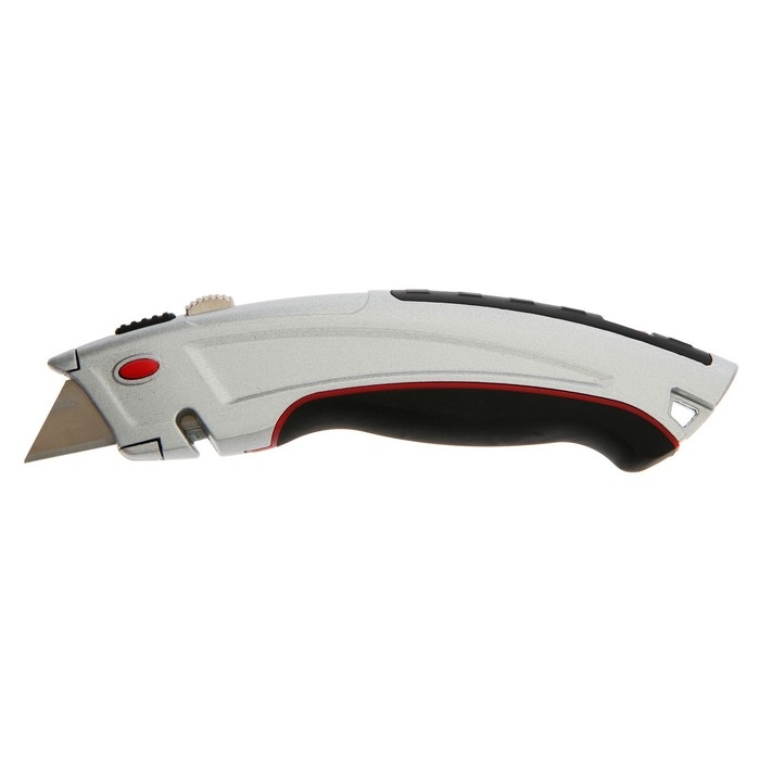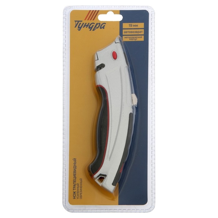 Нож трапециевидный ТУНДРА, металлический корпус, усиленный, обрезиненный, автовозврат, 19 мм 94596