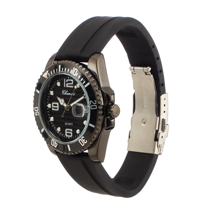 Часы наручные кварцевые мужские, с календарем, d-4.4 см, ремешок l-24 см, светящиеся, 3 ATM 973000